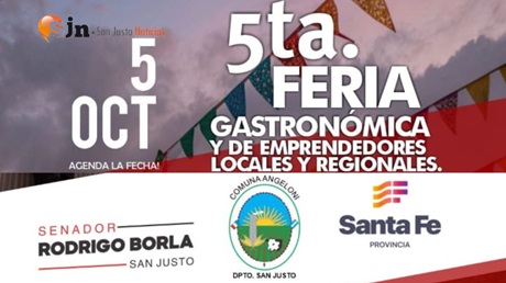 El domingo 5 de octubre, en Colonia Angeloni, tendrá lugar la 5º edición de la Feria Gastronómica y de Emprendedores locales y regionales.