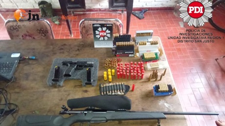 Los operativos se llevaron a cabo en una vivienda del ejido urbano de San Justo y en una finca rural ubicada al noreste de la ciudad, en la zona conocida como “Esquina Grande”. Durante las diligencias, el personal de PDI secuestró una importante cantidad de armas y municiones: una pistola 9 mm marca Taurus, cargadores del mismo calibre sin municiones, un fusil Sabatti con mira, una pistola y un rifle de aire comprimido, además de cartuchos de distintos calibres, entre ellos 101 de 9 mm, 58 de calibre .308, 1 de calibre .300, 6 de calibre 20, 39 de calibre 14 y 40 de calibre 22.